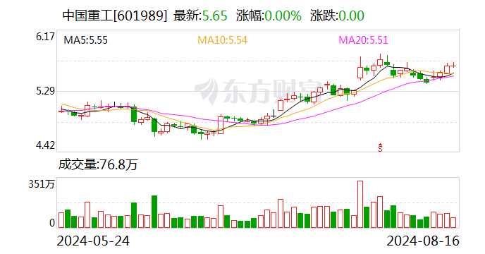 入股后,国风投基金自愿锁定36个月,且一直未有减持。截至今日收盘,中国重工(601989)股价为5.65元/股。